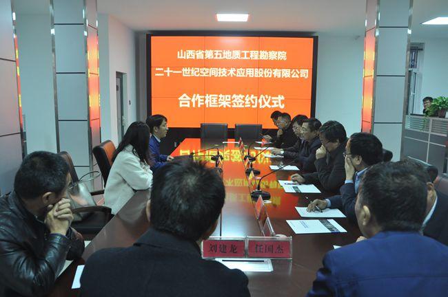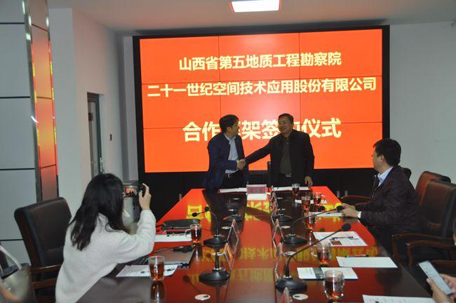 10月28日,二十一世紀空間技術(shù)應(yīng)用股份有限公司與山西省第五地質(zhì)工程勘察院簽署合作框架協(xié)議。二十一世紀公司紀中奎副總經(jīng)理、宋江華區(qū)域經(jīng)理,山西省第五地質(zhì)工程勘察院姚文兵院長、呂福清總工程師及有關(guān)科室人員參加了簽約儀式。