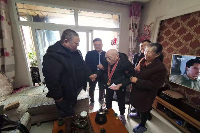 走訪中,二一三隊離退休科科長王高陽一行代表隊黨委,先后前往重慶、西安,向我隊抗美援朝志愿軍老戰(zhàn)士李斌、馬驥致以親切的問候和崇高的敬意。送上了慰問金和慰問品,詳細詢問了解老人的身體狀況、政策保障落實和當前生活情況,向他們傳達了黨和國家對志愿軍老戰(zhàn)士的關(guān)愛,并為老同志戴上了承載無上榮光的“中國人民志愿軍抗美援朝出國作戰(zhàn)70周年”紀念章,衷心感謝他們?yōu)榭姑涝?、保家衛(wèi)國做出的貢獻,祝福老同志健康長壽。(通訊員:劉雯)