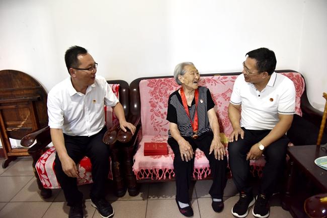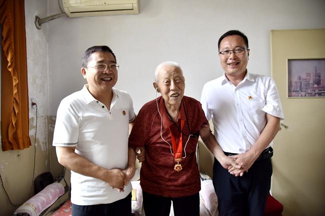 7月1日,二一三隊(duì)隊(duì)長(zhǎng)姚文兵、黨委書(shū)記趙江濤帶領(lǐng)隊(duì)黨辦、離退休科相關(guān)工作人員看望慰問(wèn)了4名建國(guó)前老黨員,向他們送去了慰問(wèn)金,頒發(fā)了“光榮在黨50年”紀(jì)念章,并致以節(jié)日的問(wèn)候和美好的祝福。