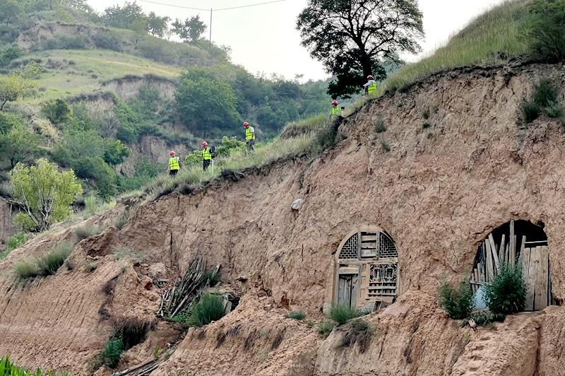 本次演練模擬汛期連續(xù)強降雨引發(fā)隰縣黃土鎮(zhèn)下莊村一起黃土崩塌地質(zhì)災(zāi)害,窯洞被埋、人員被困。演練期間,接到隰縣自然資源局通知后,二一三地質(zhì)隊有限公司迅速派出由10人組成的應(yīng)急分隊趕赴現(xiàn)場。到達現(xiàn)場后,應(yīng)急分隊第一時間采用無人機航拍,確定了災(zāi)害發(fā)生地的地質(zhì)環(huán)境條件、誘發(fā)因素和災(zāi)害特征以及現(xiàn)場地質(zhì)災(zāi)害的分布、規(guī)模、受災(zāi)范圍和影響范圍,并安排專人對隱患點進行全天候監(jiān)測,獲取隱患點實時數(shù)據(jù)。技術(shù)專家結(jié)合航拍影像和監(jiān)測資料,對地質(zhì)災(zāi)害的發(fā)展趨勢、影響范圍進行研判,提出了切實有效的防治措施和建議。