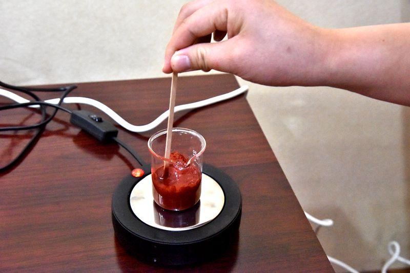 隨后,老師介紹了DIY制作口紅的方法步驟和注意事項(xiàng),大家按照老師的講解,先將精油和色粉按比例裝入燒杯混合攪拌,加熱融化后倒入模具中冷卻,最后通過(guò)專(zhuān)業(yè)脫模工具將口紅取出。攪拌、加熱、溶解、固定等一系列步驟過(guò)后,大家專(zhuān)屬定制的口紅就出爐了。大家沉浸在收獲的喜悅當(dāng)中,有的發(fā)朋友圈分享努力的成果,有的拍照合影記錄美好瞬間,現(xiàn)場(chǎng)氣氛輕松而愉悅。