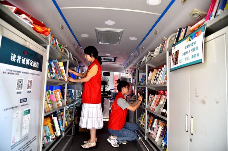 活動現(xiàn)場,二一三地質(zhì)隊(duì)志愿者們協(xié)助圖書館工作人員整理流動車內(nèi)圖書,緩解活動現(xiàn)場工作人員不足問題,細(xì)心地核對觀察圖書上的編碼,與圖書館工作人員們,根據(jù)書籍標(biāo)簽對圖書分門別類,放在指定的位置。對前來借閱的居民耐心指引,幫助社區(qū)居民辦理借閱卡,查找需要的書籍。居民們在流動圖書車內(nèi)挑選到喜愛的圖書后可立即辦理借閱手續(xù),紛紛表示:“在家門口就能閱讀到這么豐富的圖書,簡直太方便了”。
