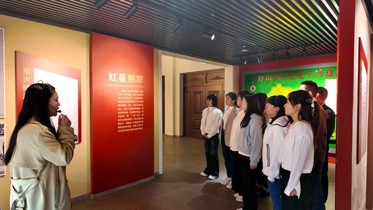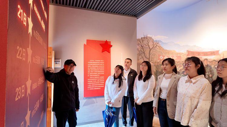 在寨圪塔扁擔(dān)精神紀(jì)念館,團(tuán)員青年們?cè)谥v解員的帶領(lǐng)下,仔細(xì)參觀了展廳內(nèi)的影像視頻、歷史圖片、文獻(xiàn)史料,回顧寨圪塔供銷社群眾的動(dòng)人事跡,感受寨圪塔供銷社干部職工在平凡的崗位上,不畏自然條件惡劣、生存環(huán)境艱苦,依靠“一條扁擔(dān)、兩個(gè)籮筐”鍛造的聞名全國的扁擔(dān)精神。