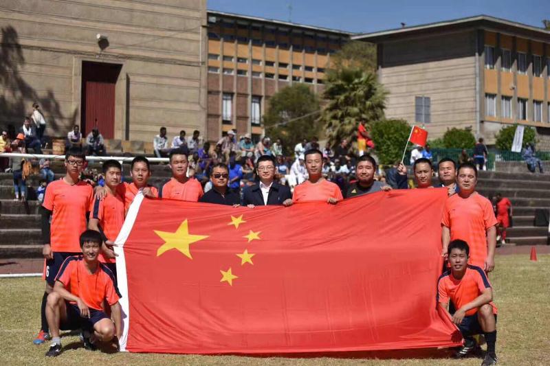 中國駐埃塞俄比亞大使館非常重視和支持此次比賽,挑選各中資機(jī)構(gòu)、公司人員聯(lián)合組隊,參與組隊的有:中地海外、廣西建工、山東公路、海隆石油、江西中煤、長園集團(tuán)、華為集團(tuán)、北方工業(yè)、保利協(xié)鑫、中土集團(tuán)。其中山西省地勘局213隊埃塞鉆探部作為中地海外股東單位及唯一參賽代表,以中地海外名義入隊。在當(dāng)日小組賽中,中國大使館隊團(tuán)結(jié)作戰(zhàn),奮力拼搏,先后勝沙特、瑞士,平瑞典,以小組積分第一的戰(zhàn)績挺進(jìn)16強(qiáng)。