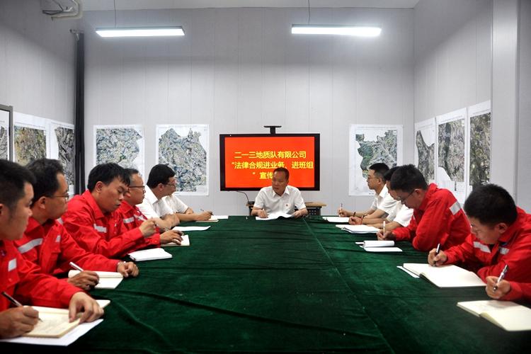 在項目部,馬亮總經(jīng)理以《安全生產(chǎn)法》《地質(zhì)集團合規(guī)手冊(制度分冊)》以及公司層面出臺的項目管理、安全生產(chǎn)、質(zhì)量管理等制度為重點內(nèi)容,開展法律合規(guī)宣傳教育,增強項目部全體職工遵章守法、合規(guī)辦事的意識和能力。