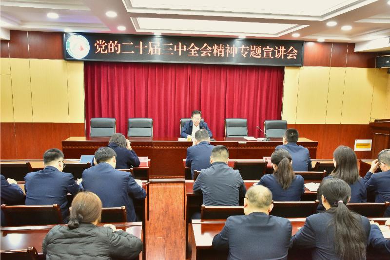 宣講會(huì)上,杜玉河從深刻理解全會(huì)的重大時(shí)代意義和深遠(yuǎn)歷史影響;深入學(xué)習(xí)領(lǐng)會(huì)習(xí)近平總書(shū)記在黨的二十屆三中全會(huì)上的重要講話精神;準(zhǔn)確理解《決定》提出的進(jìn)一步全面深化改革重大舉措;全力以赴抓好全會(huì)精神貫徹落實(shí)等四個(gè)方面,結(jié)合公司工作實(shí)際,對(duì)全會(huì)精神進(jìn)行系統(tǒng)闡釋和深入解讀。教育引領(lǐng)參會(huì)干部職工要深刻理解全會(huì)精神,用科學(xué)理論指導(dǎo)實(shí)踐、推動(dòng)工作。