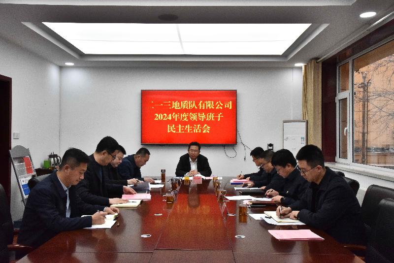 為深入學習貫徹黨的二十屆三中全會精神、鞏固深化黨紀學習教育成果,根據集團黨委工作安排,2月19日下午,二一三地質隊有限公司黨委召開2024年度領導班子民主生活會。集團黨委專職副書記、副董事長、工會主席杜玉河,集團組織人事部部長張紅淵到會指導。公司黨委書記、董事長趙江濤主持會議并作總結講話。