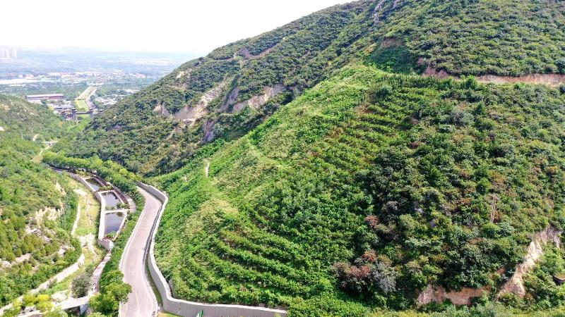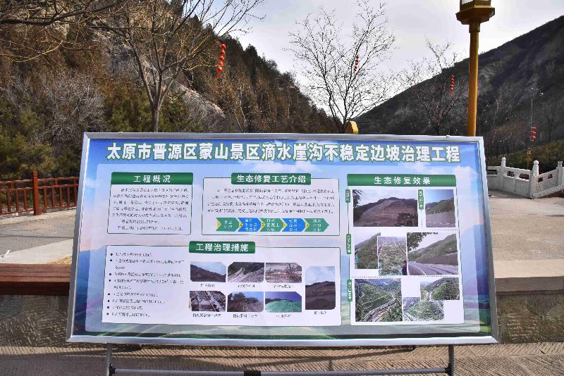 (圖片為生態(tài)修復治理五年后晉源區(qū)蒙山景區(qū)滴水崖溝不穩(wěn)定邊坡)