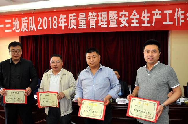 會(huì)上,隊(duì)總工辦主任解遠(yuǎn)鵬總結(jié)了全隊(duì)2017年質(zhì)量工作并安排了2018的質(zhì)量工作要點(diǎn);總工程師呂福清傳達(dá)了局地質(zhì)勘查工作會(huì)議精神,并就做好2018年全隊(duì)質(zhì)量工作提出了三點(diǎn)要求:一是要進(jìn)一步提升底線意識(shí)和質(zhì)量意識(shí);二是要加強(qiáng)項(xiàng)目組織管理工作,組織實(shí)施好現(xiàn)有項(xiàng)目;三是要做好地質(zhì)勘查項(xiàng)目的招投標(biāo)以及立項(xiàng)工作。隊(duì)安全科科長(zhǎng)張俊林總結(jié)了全隊(duì)2017年安全生產(chǎn)工作并安排了2018的安全生產(chǎn)工作要點(diǎn)。副隊(duì)長(zhǎng)施德剛傳達(dá)了彭東曉局長(zhǎng)在全局安全生產(chǎn)工作會(huì)議上的講話和局安全生產(chǎn)工作會(huì)議精神,并就即將開(kāi)展的春季安全大檢查工作提出具體要求。局安監(jiān)處李正剛處長(zhǎng)對(duì)二一三隊(duì)的安全工作給予了充分肯定,并對(duì)今后的安全工作提出了6點(diǎn)意見(jiàn):一是要深入學(xué)習(xí)彭局長(zhǎng)講話精神,落實(shí)韓副局長(zhǎng)工作報(bào)告的要求,把握正確的工作方向;二是以目標(biāo)任務(wù)為導(dǎo)向,著力找準(zhǔn)工作發(fā)力點(diǎn);三是以鐵的擔(dān)當(dāng)為總要求,著力敲緊壓實(shí)安全責(zé)任。四是以鐵的手腕控制風(fēng)險(xiǎn)治理隱患,著力提高本質(zhì)安全水平;五是要以鐵的辦法固本強(qiáng)基,著力提高安全生產(chǎn)基礎(chǔ);六是要以鐵的心腸追責(zé)問(wèn)責(zé),著力各項(xiàng)工作落實(shí)。隨后,副隊(duì)長(zhǎng)刁翊宣讀了關(guān)于表彰2017年度安全生產(chǎn)先進(jìn)單位和個(gè)人、質(zhì)量先進(jìn)單位和個(gè)人的決定。