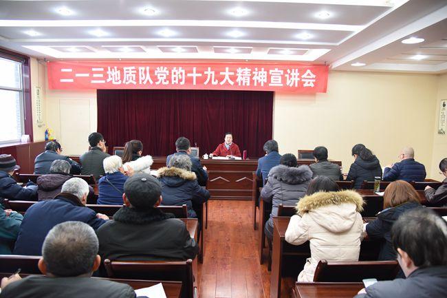 12月19日下午,二一三隊(duì)在二樓大會(huì)議室舉辦黨的十九大精神專題講座,特邀臨汾市堯都區(qū)委宣傳部副部長(zhǎng)、區(qū)委宣講團(tuán)成員秦英進(jìn)行專題宣講。隊(duì)領(lǐng)導(dǎo)、黨員干部、職工共50余人參加講座,宣講會(huì)由隊(duì)黨委副書記趙江濤主持。