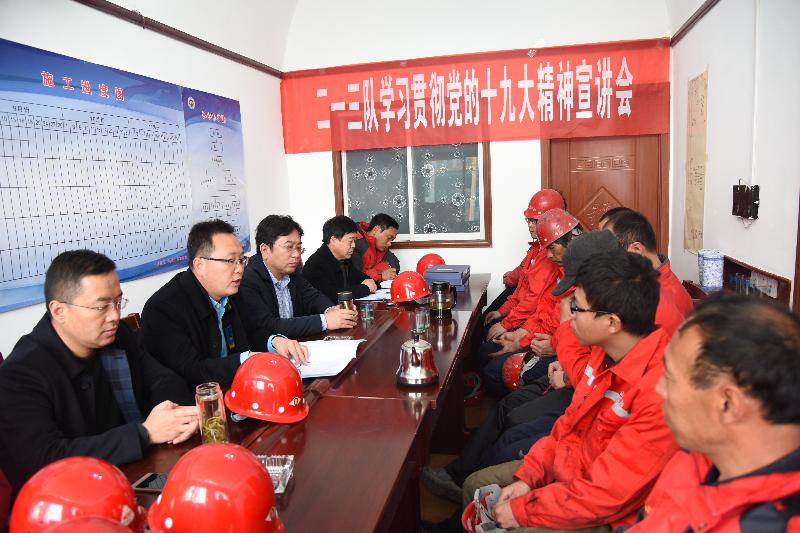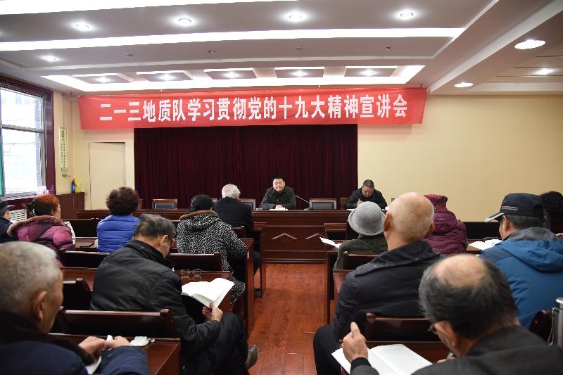 總工程師呂福清、副隊(duì)長(zhǎng)刁翊、紀(jì)委書(shū)記喬俊卿、副隊(duì)長(zhǎng)施德剛分別緊扣十九大報(bào)告原文,圍繞中國(guó)特色社會(huì)主義進(jìn)入新時(shí)代、習(xí)近平新時(shí)代中國(guó)特色社會(huì)主義思想、實(shí)現(xiàn)第二個(gè)百年奮斗目標(biāo)的戰(zhàn)略部署、我國(guó)社會(huì)主要矛盾變化的新概括、新時(shí)代黨的建設(shè)的新要求,結(jié)合地勘單位實(shí)際,進(jìn)行了系統(tǒng)宣講和深刻解讀,并重點(diǎn)解析了十九大報(bào)告中關(guān)于地質(zhì)、生態(tài)、經(jīng)濟(jì)發(fā)展等方面的戰(zhàn)略部署。