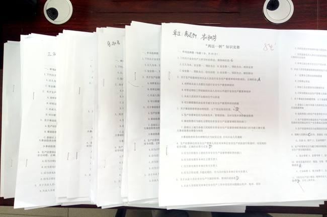 活動期間,由工會組織,安全生產(chǎn)科配合開展了“兩法一例”安全生產(chǎn)知識競賽活動,印發(fā)試卷360份,回收試卷360份,通過答題競賽活動,普及了“兩法一例”安全生產(chǎn)知識,提高了全員安全素質(zhì),全面推進了安全生產(chǎn)教育活動。