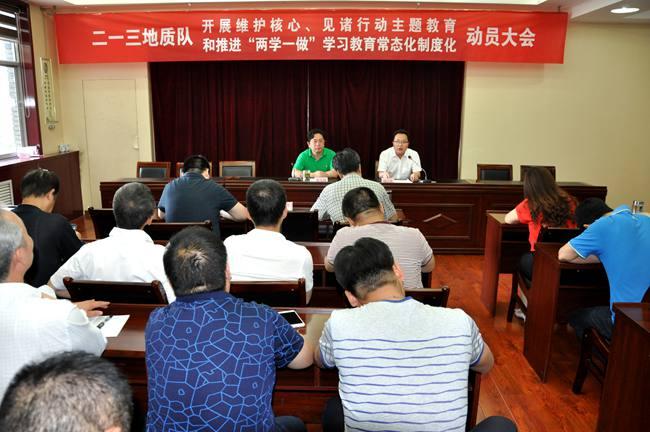 5月25日下午,二一三隊在二樓大會議室召開了維護(hù)核心、見諸行動主題教育和推進(jìn)“兩學(xué)一做”學(xué)習(xí)教育常態(tài)化制度化動員大會,隊領(lǐng)導(dǎo)班子成員、各黨支部書記、隊中層以上干部共60余人參加了大會,會議由隊長杜玉河主持。