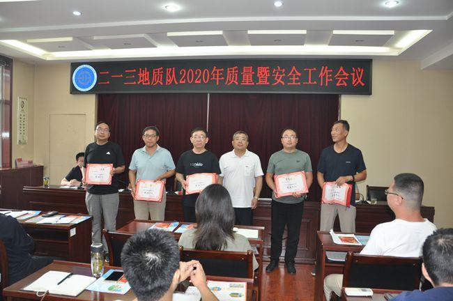 會(huì)上,總工程師呂福清傳達(dá)了彭東曉局長(zhǎng)在全局地質(zhì)勘查工作會(huì)上的講話(huà)以及局地質(zhì)勘查工作會(huì)議精神??偣まk主任武增光就2020年質(zhì)量管理工作作出安排:一是組織好現(xiàn)有項(xiàng)目的實(shí)施及跟蹤檢查工作。二是加強(qiáng)地質(zhì)勘查項(xiàng)目立項(xiàng)研究工作。三是選擇重點(diǎn)領(lǐng)域做好科研創(chuàng)新工作。四是加強(qiáng)與科研院所合作。五是加強(qiáng)職工技術(shù)培訓(xùn)和技術(shù)交流活動(dòng)。六是加強(qiáng)新規(guī)范、規(guī)程的推行落實(shí)工作。七是完善質(zhì)量管理體系加強(qiáng)質(zhì)量管理工作。副隊(duì)長(zhǎng)馬亮傳達(dá)了全國(guó)安全生產(chǎn)電視電話(huà)會(huì)議、習(xí)總書(shū)記重要論述以及局2020年安全生產(chǎn)工作會(huì)議精神。安全科科長(zhǎng)原斌就2020年安全生產(chǎn)工作作出安排:一是認(rèn)清形勢(shì),始終堅(jiān)持安全發(fā)展理念。二是加強(qiáng)組織領(lǐng)導(dǎo),切實(shí)落實(shí)安全生產(chǎn)主體責(zé)任。三是繼續(xù)推進(jìn)風(fēng)險(xiǎn)隱患雙重預(yù)防機(jī)制,全面提升事故預(yù)防能力。四是從嚴(yán)監(jiān)管,強(qiáng)化安全隱患排查治理。五是強(qiáng)化安全基礎(chǔ)建設(shè),提高安全生產(chǎn)意識(shí)。六是加強(qiáng)應(yīng)急管理,提高應(yīng)急響應(yīng)能力。副隊(duì)長(zhǎng)刁翊宣讀了關(guān)于表彰2019年質(zhì)量先進(jìn)個(gè)人、安全生產(chǎn)先進(jìn)個(gè)人的決定。
